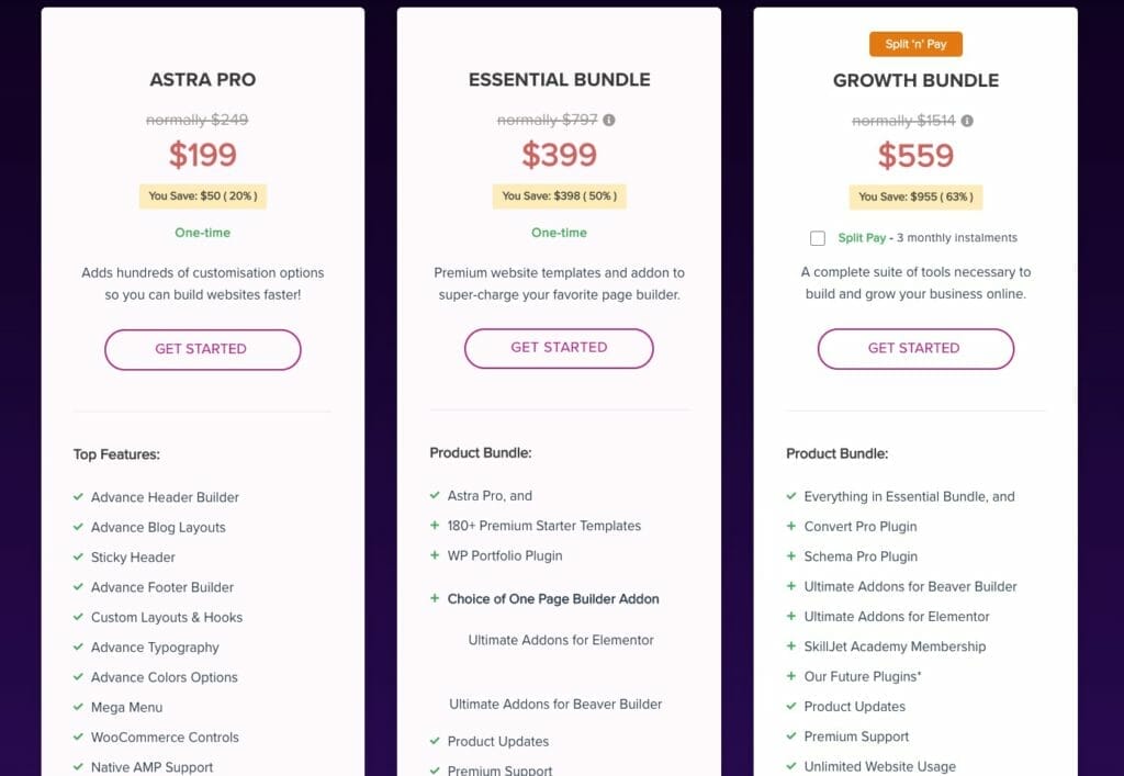 If you are new to WordPress, consider getting Astra’s Growth Bundle. It comes with some powerful plugins that enhances your site, making it a value for money outlay. These includes: