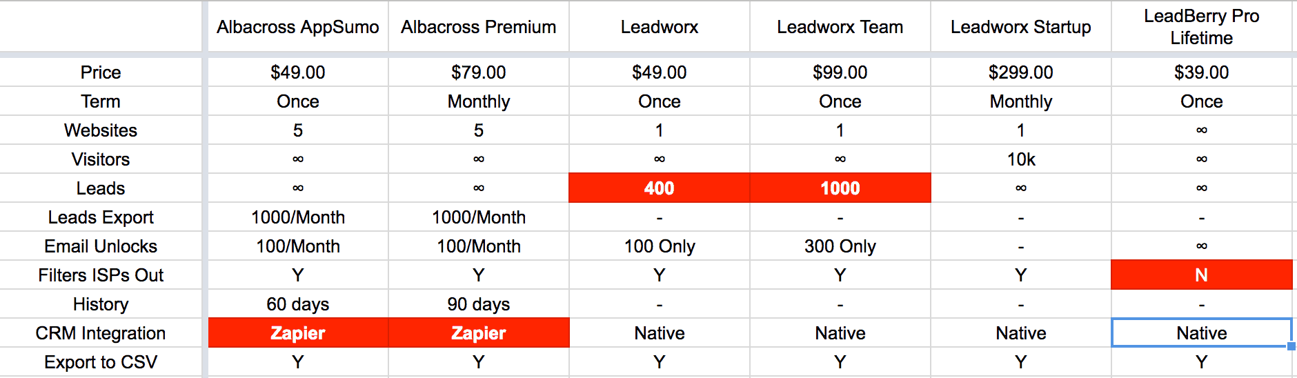 In our previous comparison of similar tools (The Leadworx Review, March 2018), we compared Leadworx with more established players such as: