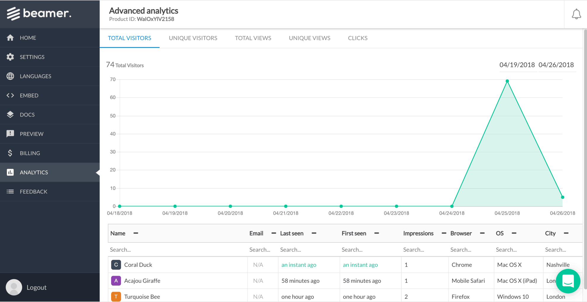 - Easy to Embed – Beamer makes it easy to embed your announcements to your site. Whether it’s a plain HTML site, Shopify, Drupal, WordPress or even Simvoly, embedding is easy and takes you minutes. Plus, the Beamer team are really responsive and will help you if you encounter any difficulties.