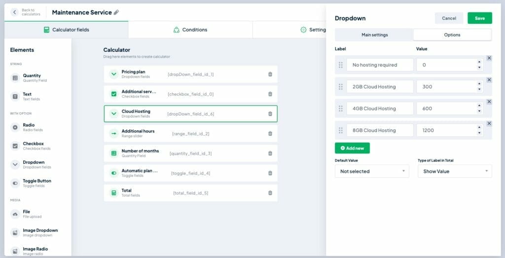 1) Drag-and-drop Calculator Builder with Conditional Fields