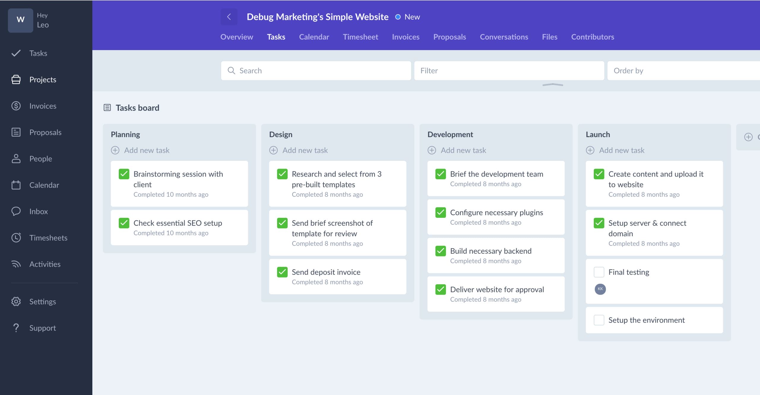 Reporting is almost non-existent in Plutio, with the only evidence being the ticks on the task itself. Plus, sub-tasks are not easily shown.